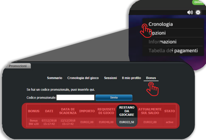 Dal web puoi controllare lo status del tuo bonus per quanto riguarda il rigioco nel dettaglio “restano da giocare”