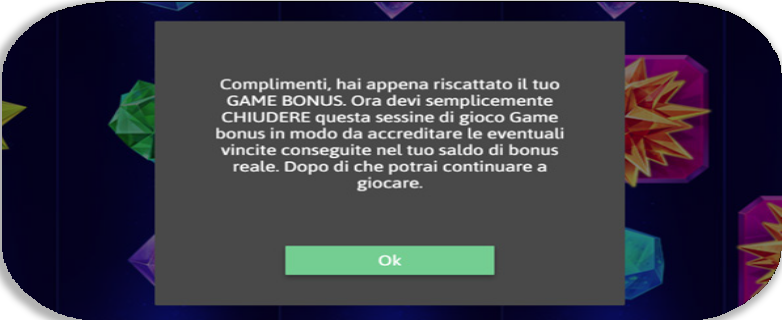 Una volta soddisfatti i requisiti di giocata, il Game Bonus verrà convertito in Bonus reale.