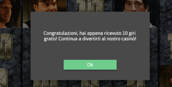 Quando riceverai un Free Spin bonus, vedrai una finestra pop-up di congratulazioni
