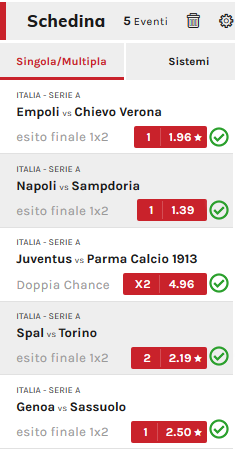 Per utilizzare il bonus e’ necessario piazzare scommesse multiple almeno 5 eventi (prematch e live) quota evento 1.30.